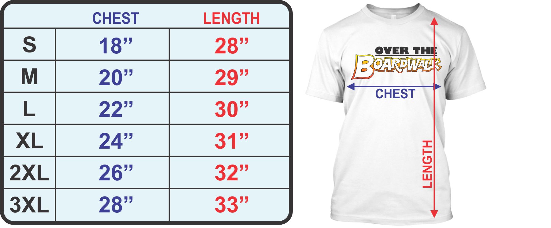 Adult T-shirt Sizing Chart (approximate measures)